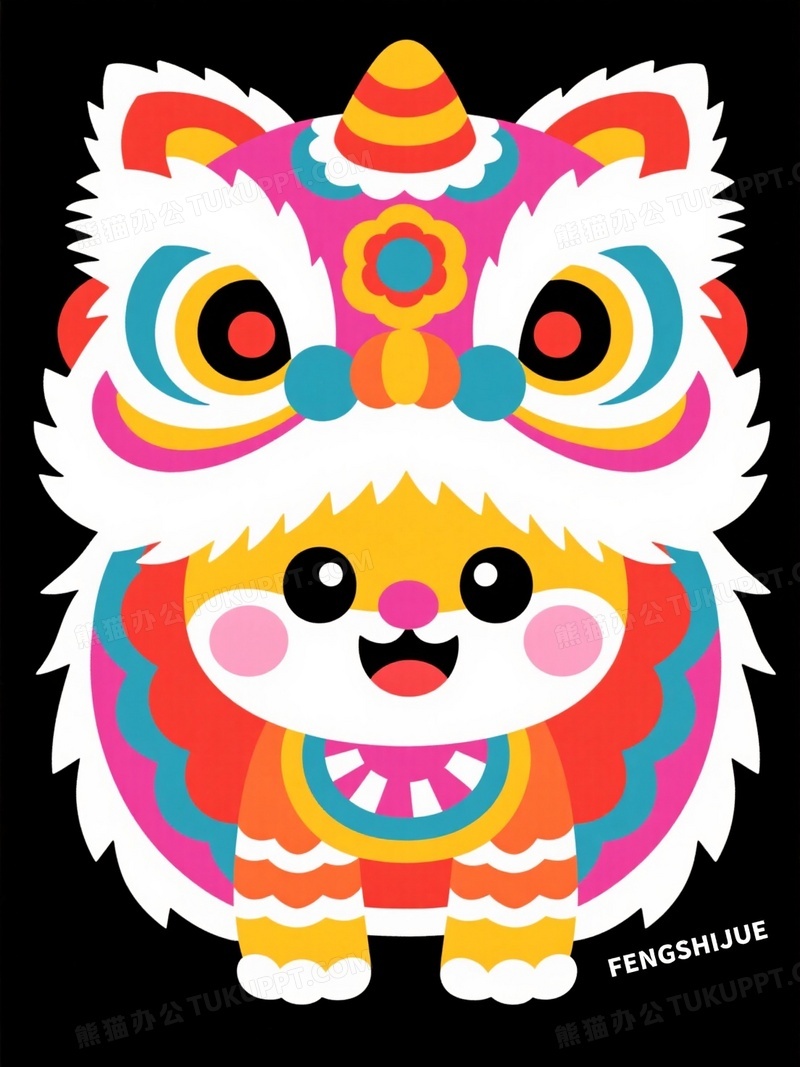 本作品内容为可爱的醒狮简单的平面民间套色剪纸风格, 格式为 jpg, 大小1 MB, 图片尺寸为1104 x 1472, 源文件无水印, 欢迎使用熊猫办公。 如认为平台内容涉嫌侵权,可通过邮件:tousu@tukuppt.com提出书面通知,我们将及时处理。