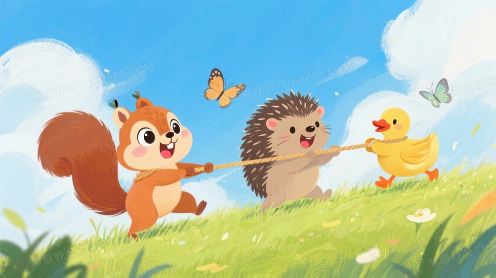 本作品内容为可爱风小动物拔河插画, 格式为 jpg, 大小1 MB, 图片尺寸为1664 x 936, 源文件无水印, 欢迎使用熊猫办公。 如认为平台内容涉嫌侵权,可通过邮件:tousu@tukuppt.com提出书面通知,我们将及时处理。