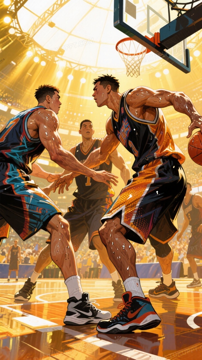 本作品内容为高清篮球比赛插画球员身着酷炫球服在球场上激烈对抗, 格式为 jpg, 大小1 MB, 图片尺寸为936 x 1664, 源文件无水印, 欢迎使用熊猫办公。 如认为平台内容涉嫌侵权,可通过邮件:tousu@tukuppt.com提出书面通知,我们将及时处理。