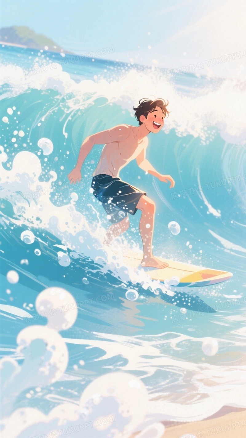 本作品内容为插画形式呈现夏天冲浪, 格式为 jpg, 大小1 MB, 图片尺寸为936 x 1664, 源文件无水印, 欢迎使用熊猫办公。 如认为平台内容涉嫌侵权,可通过邮件:tousu@tukuppt.com提出书面通知,我们将及时处理。