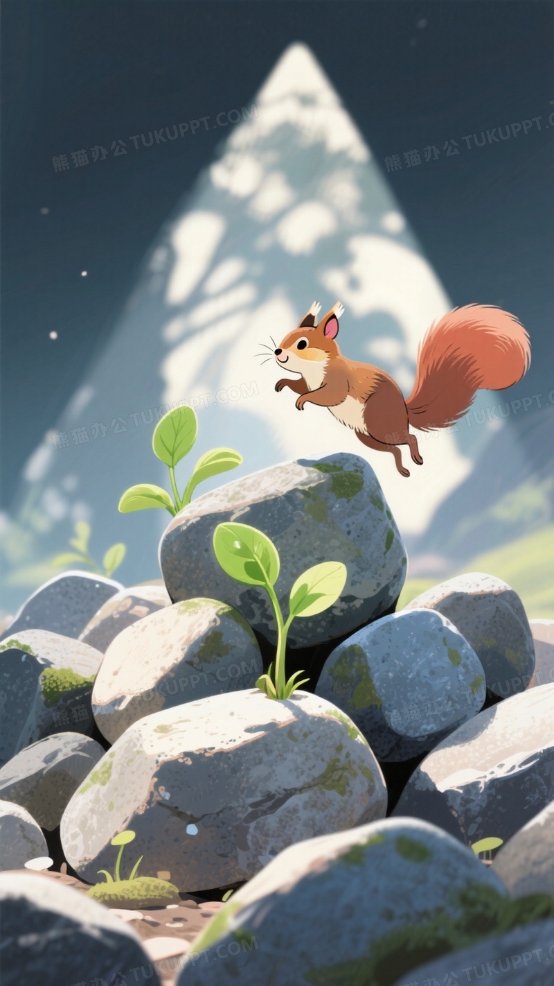 本作品内容为治愈系的卡通插画石头堆里有新芽努力生长, 格式为 jpg, 大小1 MB, 图片尺寸为936 x 1664, 源文件无水印, 欢迎使用熊猫办公。 如认为平台内容涉嫌侵权,可通过邮件:tousu@tukuppt.com提出书面通知,我们将及时处理。