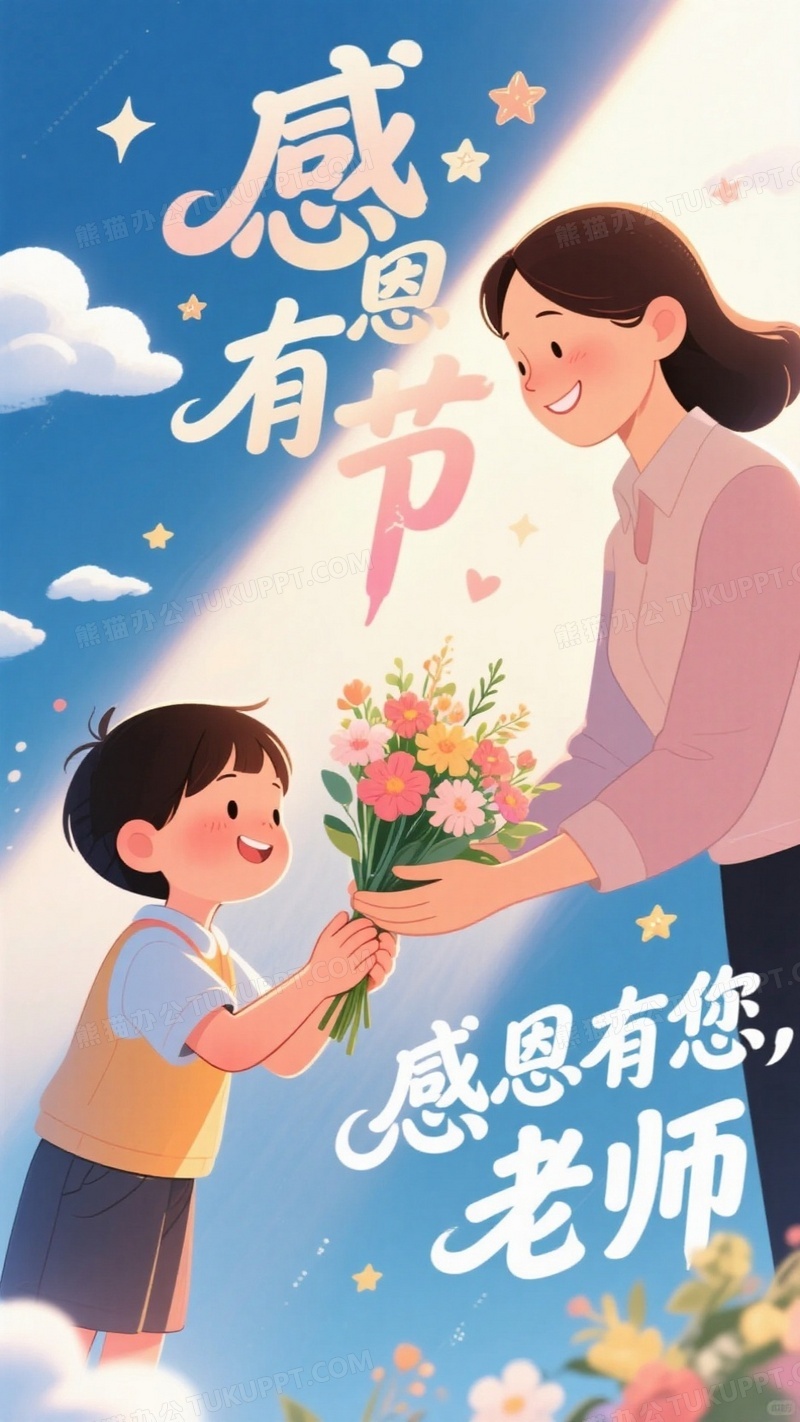 本作品内容为教师节感恩卡通插画小朋友双手虔诚地献上鲜花, 格式为 jpg, 大小1 MB, 图片尺寸为936 x 1664, 源文件无水印, 欢迎使用熊猫办公。 如认为平台内容涉嫌侵权,可通过邮件:tousu@tukuppt.com提出书面通知,我们将及时处理。