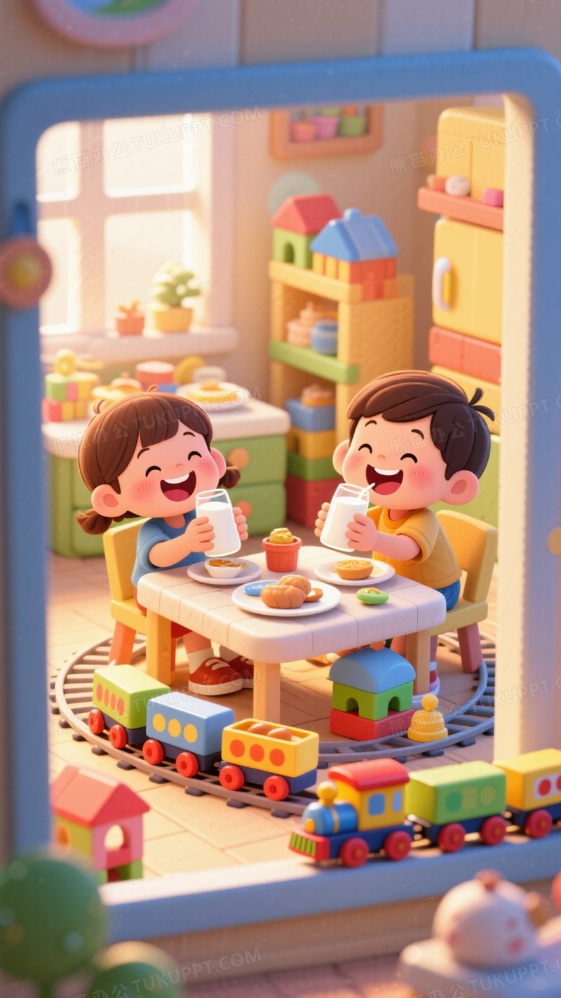 本作品内容为趣味卡通插画小朋友在玩具搭建的早餐空间, 格式为 jpg, 大小1 MB, 图片尺寸为936 x 1664, 源文件无水印, 欢迎使用熊猫办公。 如认为平台内容涉嫌侵权,可通过邮件:tousu@tukuppt.com提出书面通知,我们将及时处理。
