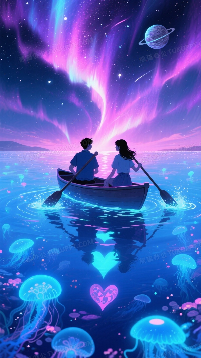 本作品内容为荧光海夜光情侣插画双人划船穿梭发光浮游生物群, 格式为 jpg, 大小1 MB, 图片尺寸为936 x 1664, 源文件无水印, 欢迎使用熊猫办公。 如认为平台内容涉嫌侵权,可通过邮件:tousu@tukuppt.com提出书面通知,我们将及时处理。