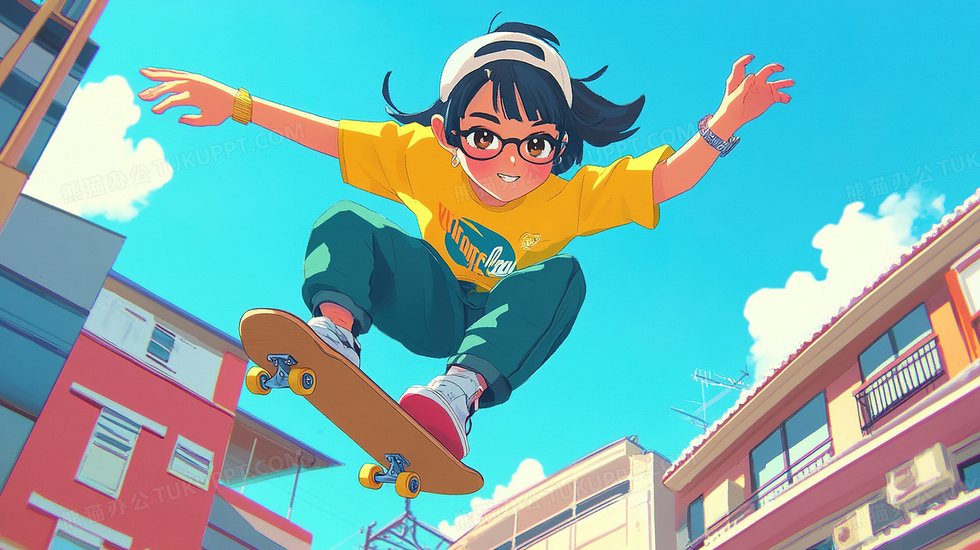 本作品内容为户外滑滑板的中学生可爱女孩插画, 格式为 jpg, 大小3 MB, 图片尺寸为2912 x 1632, 源文件无水印, 欢迎使用熊猫办公。 如认为平台内容涉嫌侵权,可通过邮件:tousu@tukuppt.com提出书面通知,我们将及时处理。