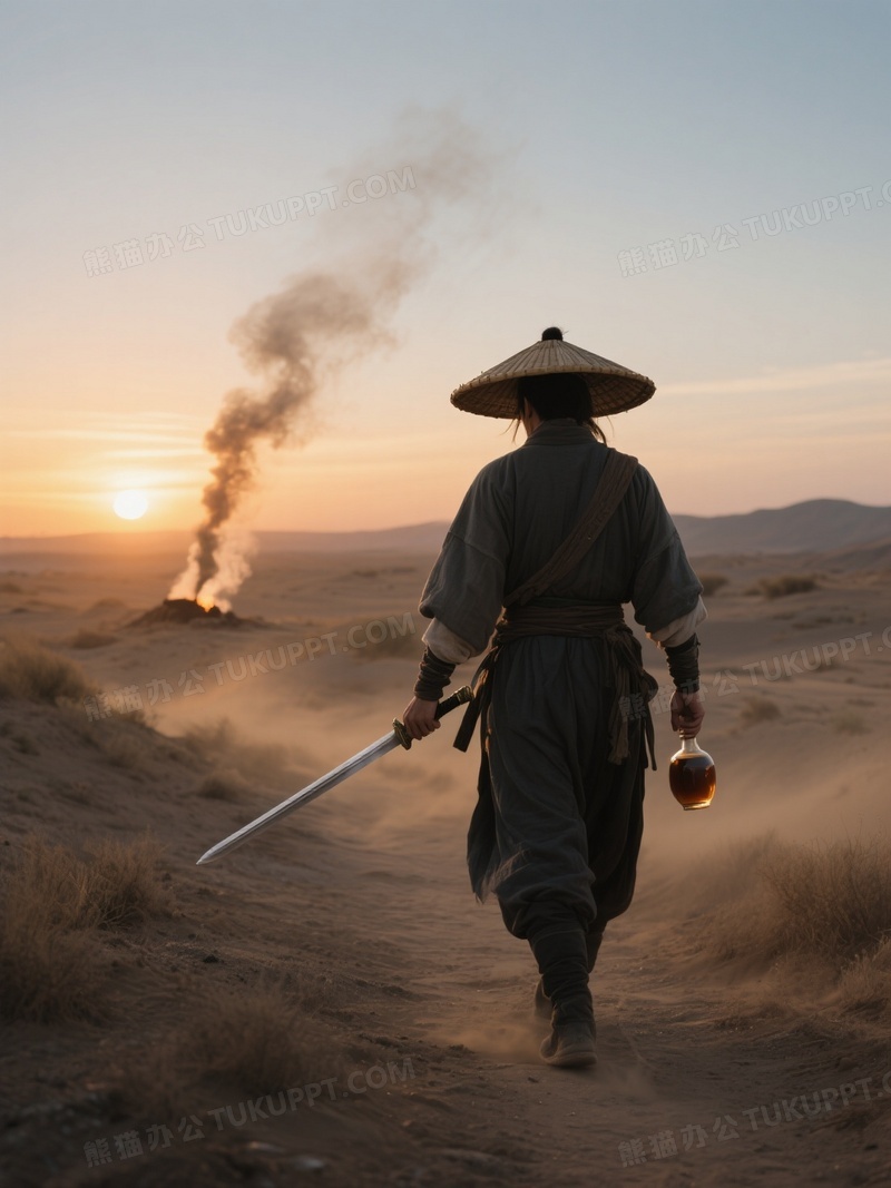 本作品内容为一位头戴斗笠的江湖侠客携带一把剑, 格式为 jpg, 大小1 MB, 图片尺寸为1104 x 1472, 源文件无水印, 欢迎使用熊猫办公。 如认为平台内容涉嫌侵权,可通过邮件:tousu@tukuppt.com提出书面通知,我们将及时处理。