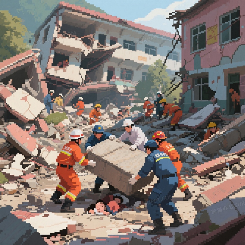 本作品内容为在汶川学校地震后的像素画废墟场景中, 格式为 jpg, 大小1 MB, 图片尺寸为1328 x 1328, 源文件无水印, 欢迎使用熊猫办公。 如认为平台内容涉嫌侵权,可通过邮件:tousu@tukuppt.com提出书面通知,我们将及时处理。