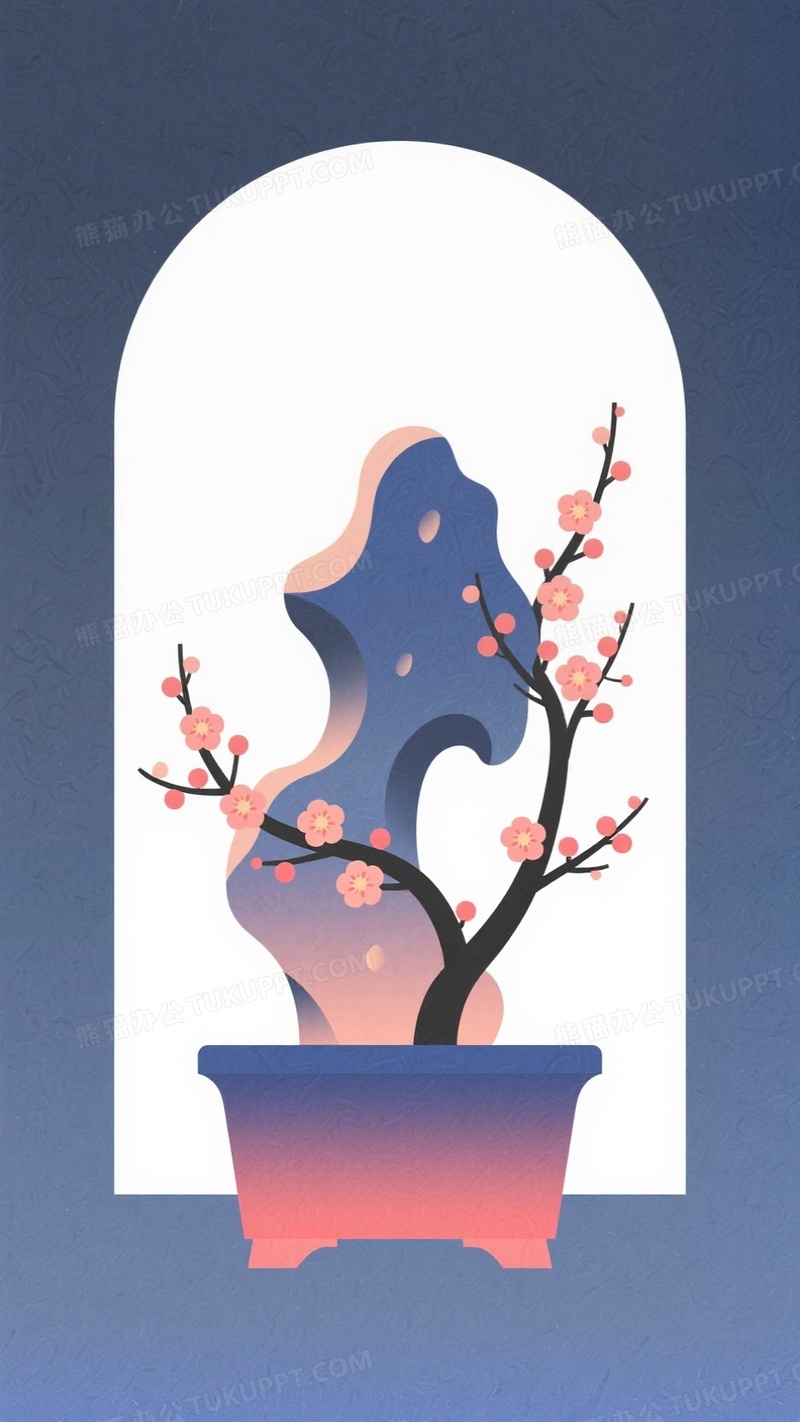 本作品内容为梅花盆栽太湖石极简背景, 格式为 jpg, 大小1 MB, 图片尺寸为936 x 1664, 源文件无水印, 欢迎使用熊猫办公。 如认为平台内容涉嫌侵权,可通过邮件:tousu@tukuppt.com提出书面通知,我们将及时处理。