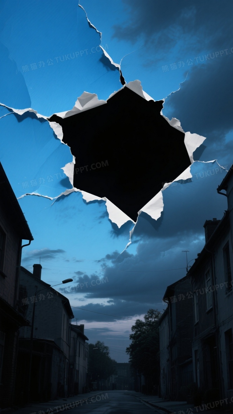 本作品内容为蔚蓝色天空被撕碎成图片天空占比二分之一透露出什么都没有的黑, 格式为 jpg, 大小1 MB, 图片尺寸为936 x 1664, 源文件无水印, 欢迎使用熊猫办公。 如认为平台内容涉嫌侵权,可通过邮件:tousu@tukuppt.com提出书面通知,我们将及时处理。