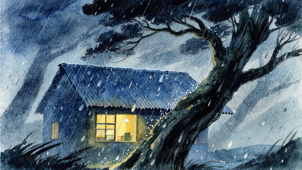 首页 > 插画 > 科技艺术 > 水彩手绘 > 台风主题插画狂风裹挟着暴雨倾斜而下