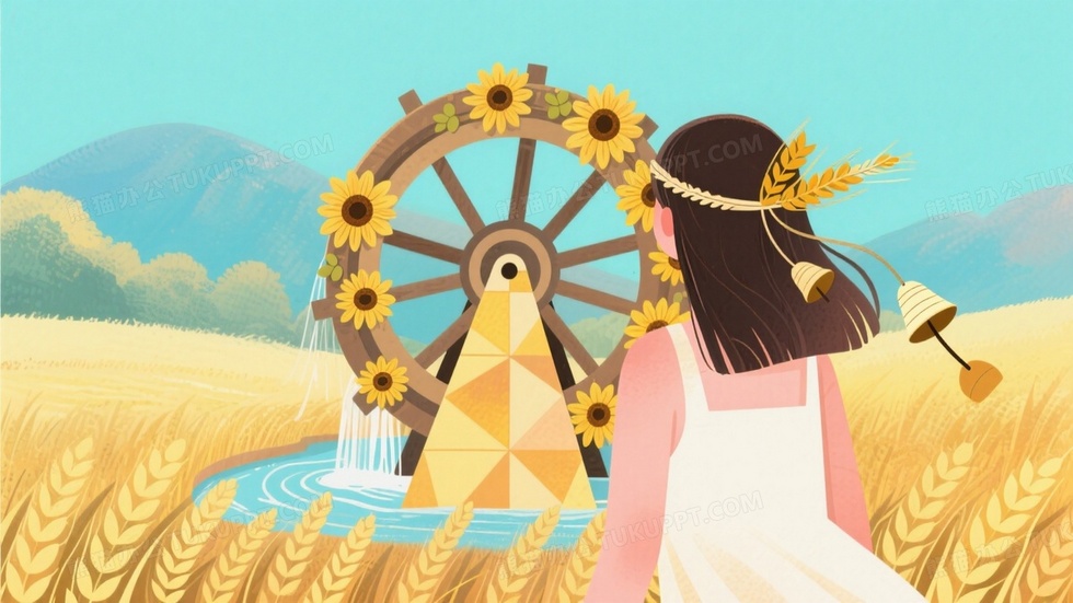 本作品内容为矢量风田园插画近景几何水车嵌满向日葵装饰, 格式为 jpg, 大小1 MB, 图片尺寸为1664 x 936, 源文件无水印, 欢迎使用熊猫办公。 如认为平台内容涉嫌侵权,可通过邮件:tousu@tukuppt.com提出书面通知,我们将及时处理。