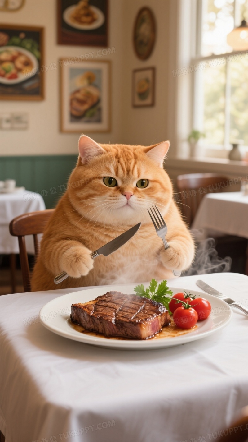 本作品内容为一只胖乎乎的橘猫正坐在一张铺着白色桌布的餐桌前, 格式为 jpg, 大小1 MB, 图片尺寸为936 x 1664, 源文件无水印, 欢迎使用熊猫办公。 如认为平台内容涉嫌侵权,可通过邮件:tousu@tukuppt.com提出书面通知,我们将及时处理。
