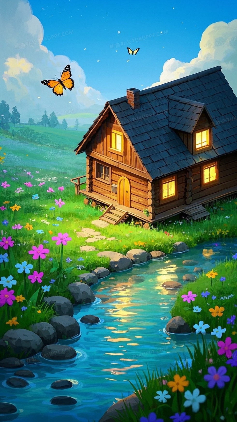 本作品内容为等距场景春天主题木屋, 格式为 jpg, 大小1 MB, 图片尺寸为1296 x 2304, 作品中背景图片无需修改, 源文件无水印,可以直接使用, 欢迎使用熊猫办公。 如认为平台内容涉嫌侵权,可通过邮件:tousu@tukuppt.com提出书面通知,我们将及时处理。