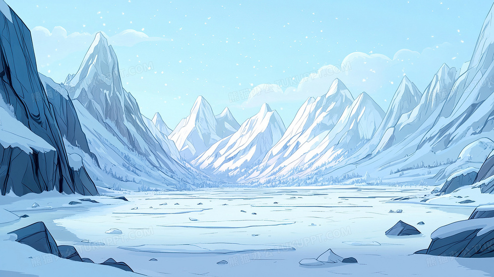 本作品内容为卡通风极寒地区的山川插画, 格式为 jpg, 大小3 MB, 图片尺寸为2912 x 1632, 源文件无水印, 欢迎使用熊猫办公。 如认为平台内容涉嫌侵权,可通过邮件:tousu@tukuppt.com提出书面通知,我们将及时处理。
