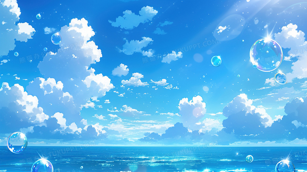 本作品内容为小清新治愈蔚蓝天空云层山水气泡插画, 格式为 jpg, 大小3 MB, 图片尺寸为2912 x 1632, 源文件无水印, 欢迎使用熊猫办公。 如认为平台内容涉嫌侵权,可通过邮件:tousu@tukuppt.com提出书面通知,我们将及时处理。