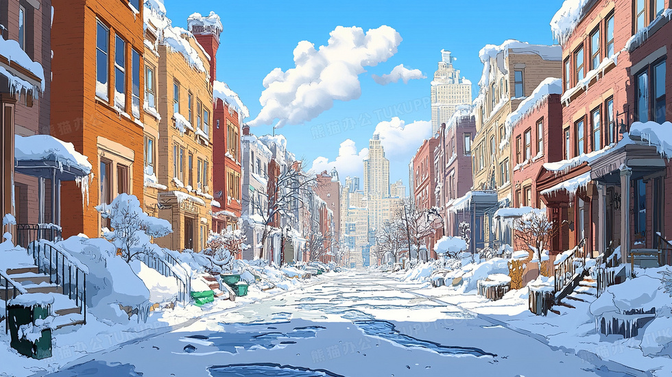 本作品内容为冬天城市街道四季唯美风景插画, 格式为 jpg, 大小4 MB, 图片尺寸为2912 x 1632, 源文件无水印, 欢迎使用熊猫办公。 如认为平台内容涉嫌侵权,可通过邮件:tousu@tukuppt.com提出书面通知,我们将及时处理。