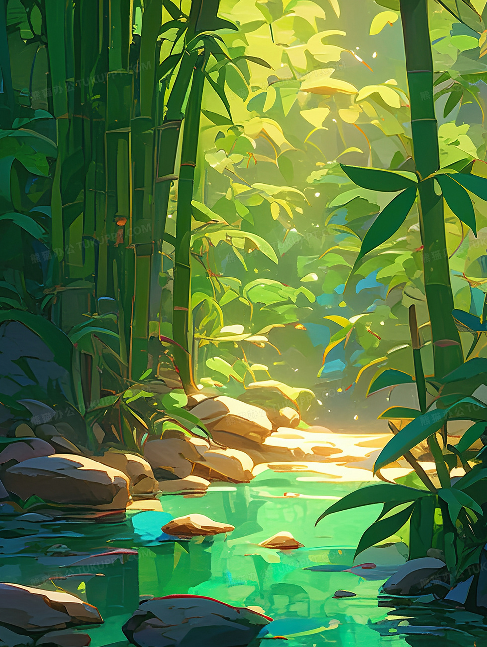 本作品内容为翡翠竹林唯美风景插画, 格式为 jpg, 大小4 MB, 图片尺寸为1856 x 2464, 源文件无水印, 欢迎使用熊猫办公。 如认为平台内容涉嫌侵权,可通过邮件:tousu@tukuppt.com提出书面通知,我们将及时处理。