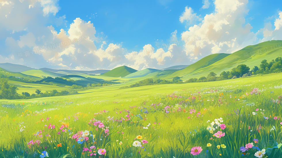 本作品内容为春天清新蓝天白云自然风景插画, 格式为 jpg, 大小4 MB, 图片尺寸为2912 x 1632, 源文件无水印, 欢迎使用熊猫办公。 如认为平台内容涉嫌侵权,可通过邮件:tousu@tukuppt.com提出书面通知,我们将及时处理。