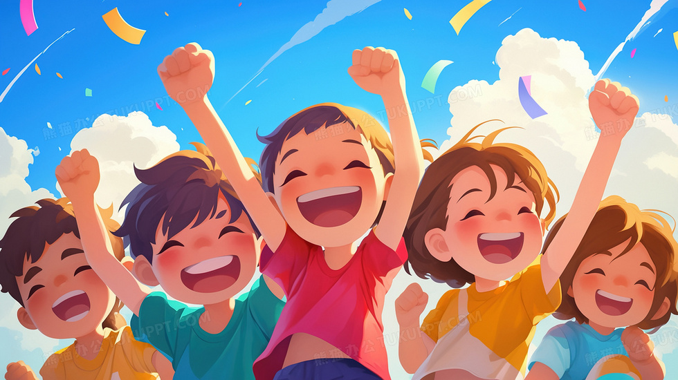 本作品内容为一群孩童高兴欢呼卡通插画, 格式为 jpg, 大小2 MB, 图片尺寸为2912 x 1632, 源文件无水印, 欢迎使用熊猫办公。 如认为平台内容涉嫌侵权,可通过邮件:tousu@tukuppt.com提出书面通知,我们将及时处理。