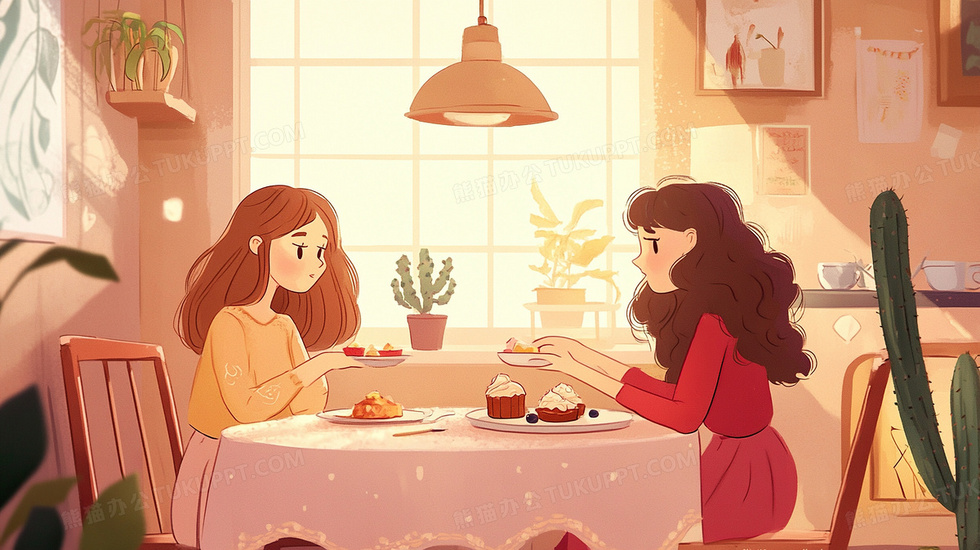 本作品内容为闺蜜聚会吃饭餐饮美食插画, 格式为 jpg, 大小3 MB, 图片尺寸为2912 x 1632, 源文件无水印, 欢迎使用熊猫办公。 如认为平台内容涉嫌侵权,可通过邮件:tousu@tukuppt.com提出书面通知,我们将及时处理。