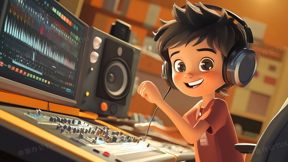 本作品内容为电脑前调音可爱卡通男孩音乐人插画, 格式为 jpg, 大小3 MB, 图片尺寸为2912 x 1632, 源文件无水印, 欢迎使用熊猫办公。 如认为平台内容涉嫌侵权,可通过邮件:tousu@tukuppt.com提出书面通知,我们将及时处理。