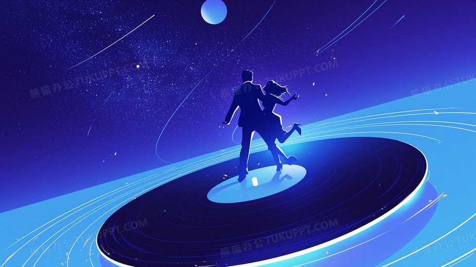 本作品内容为一对情侣在星系的旋臂中翩翩起舞插画, 格式为 jpg, 大小8 MB, 图片尺寸为2912 x 1632, 源文件无水印, 欢迎使用熊猫办公。 如认为平台内容涉嫌侵权,可通过邮件:tousu@tukuppt.com提出书面通知,我们将及时处理。