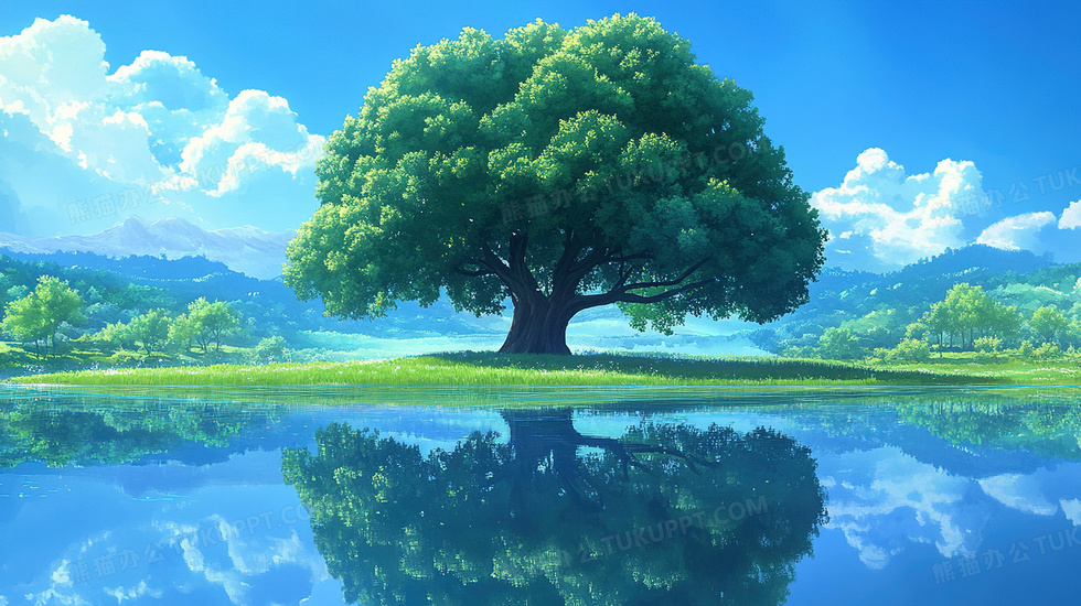 本作品内容为大树湖水倒影唯美壁纸风景插画, 格式为 jpg, 大小4 MB, 图片尺寸为2912 x 1632, 源文件无水印, 欢迎使用熊猫办公。 如认为平台内容涉嫌侵权,可通过邮件:tousu@tukuppt.com提出书面通知,我们将及时处理。