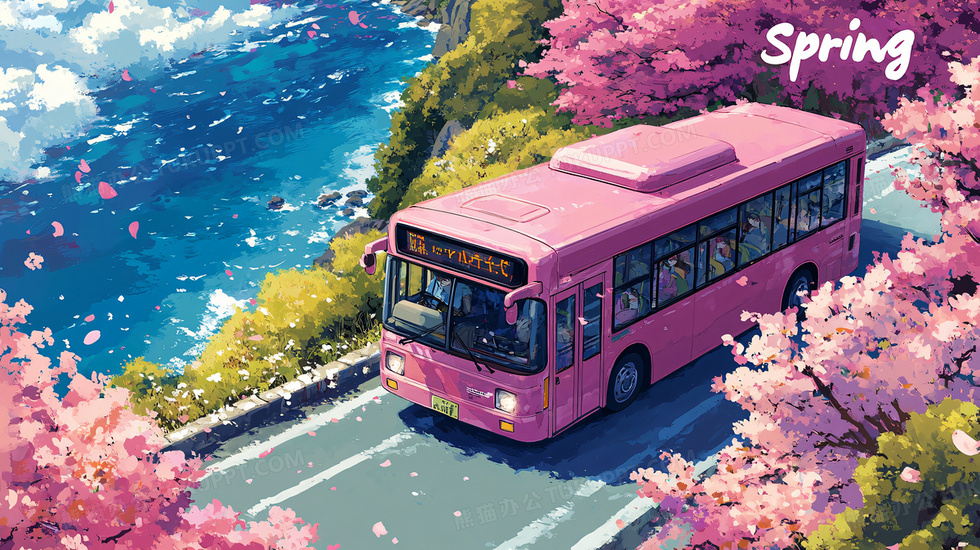 本作品内容为鲜花小路开往春天的公交车巴士插画, 格式为 jpg, 大小8 MB, 图片尺寸为2912 x 1632, 源文件无水印, 欢迎使用熊猫办公。 如认为平台内容涉嫌侵权,可通过邮件:tousu@tukuppt.com提出书面通知,我们将及时处理。