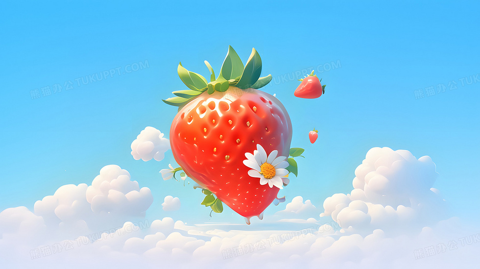 本作品内容为创意可爱的3D水果草莓背景图片, 格式为 jpg, 大小2 MB, 图片尺寸为2912 x 1632, 作品中背景图片无需修改, 源文件无水印,可以直接使用, 欢迎使用熊猫办公。 如认为平台内容涉嫌侵权,可通过邮件:tousu@tukuppt.com提出书面通知,我们将及时处理。