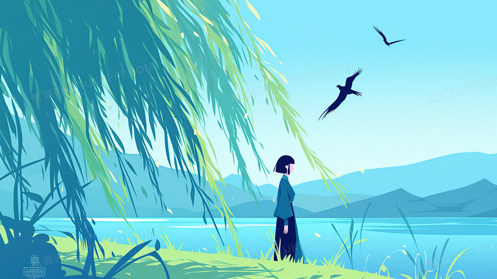 本作品内容为杨柳树下的女孩插画, 格式为 jpg, 大小3 MB, 图片尺寸为2912 x 1632, 源文件无水印, 欢迎使用熊猫办公。 如认为平台内容涉嫌侵权,可通过邮件:tousu@tukuppt.com提出书面通知,我们将及时处理。