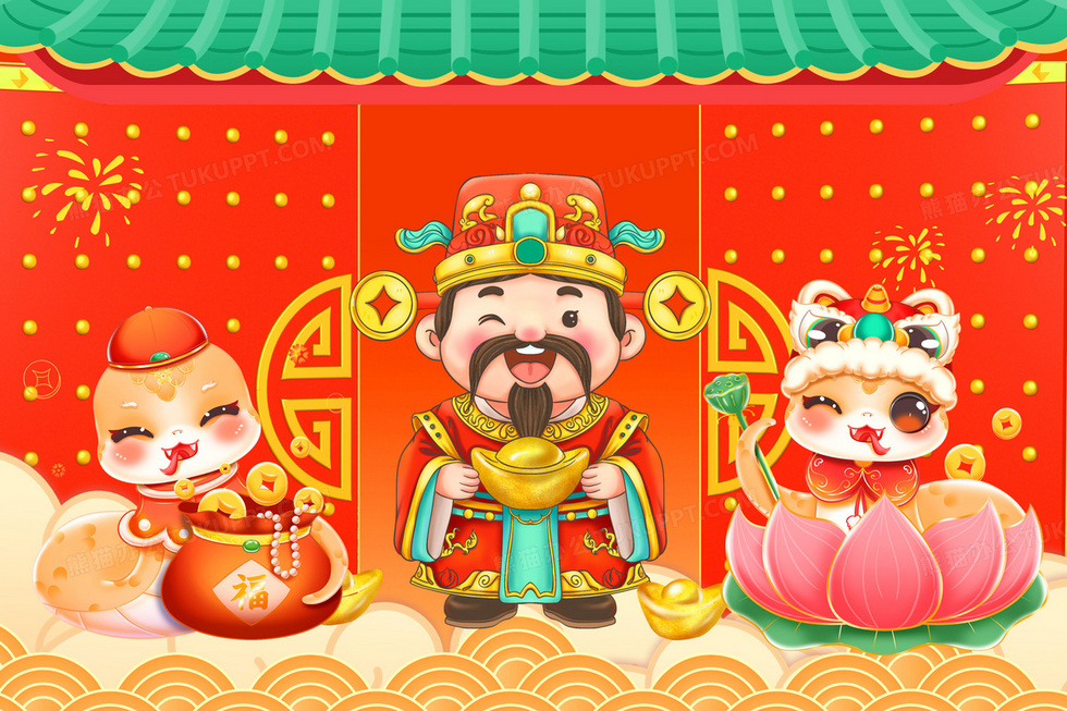本作品内容为新年小蛇与财神爷插画, 格式为 psd, 大小46 MB, 请使用软件PhotoShop(CC)打开, 源文件无水印, 欢迎使用熊猫办公。 如认为平台内容涉嫌侵权,可通过邮件:tousu@tukuppt.com提出书面通知,我们将及时处理。