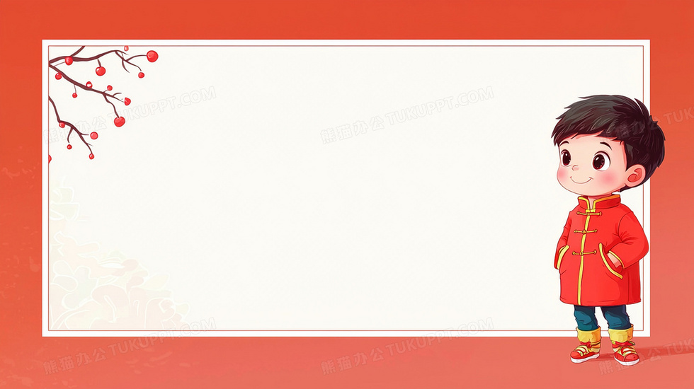 本作品内容为卡通小男孩边框红色边框, 格式为 jpg, 大小2 MB, 图片尺寸为2912 x 1632, 作品中背景图片无需修改, 源文件无水印,可以直接使用, 欢迎使用熊猫办公。 如认为平台内容涉嫌侵权,可通过邮件:tousu@tukuppt.com提出书面通知,我们将及时处理。