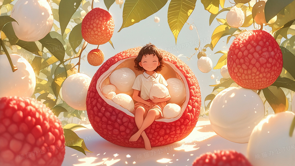 本作品内容为坐在水果荔枝里的卡通微缩女孩插画, 格式为 jpg, 大小3 MB, 图片尺寸为2912 x 1632, 源文件无水印, 欢迎使用熊猫办公。 如认为平台内容涉嫌侵权,可通过邮件:tousu@tukuppt.com提出书面通知,我们将及时处理。