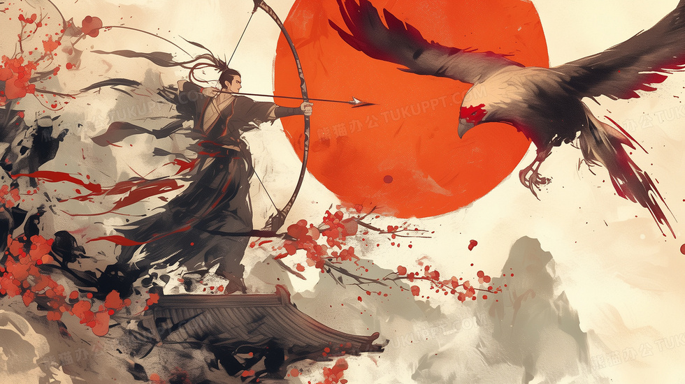 本作品内容为一位手持弓箭的古人插画, 格式为 jpg, 大小8 MB, 图片尺寸为2912 x 1632, 源文件无水印, 欢迎使用熊猫办公。 如认为平台内容涉嫌侵权,可通过邮件:tousu@tukuppt.com提出书面通知,我们将及时处理。