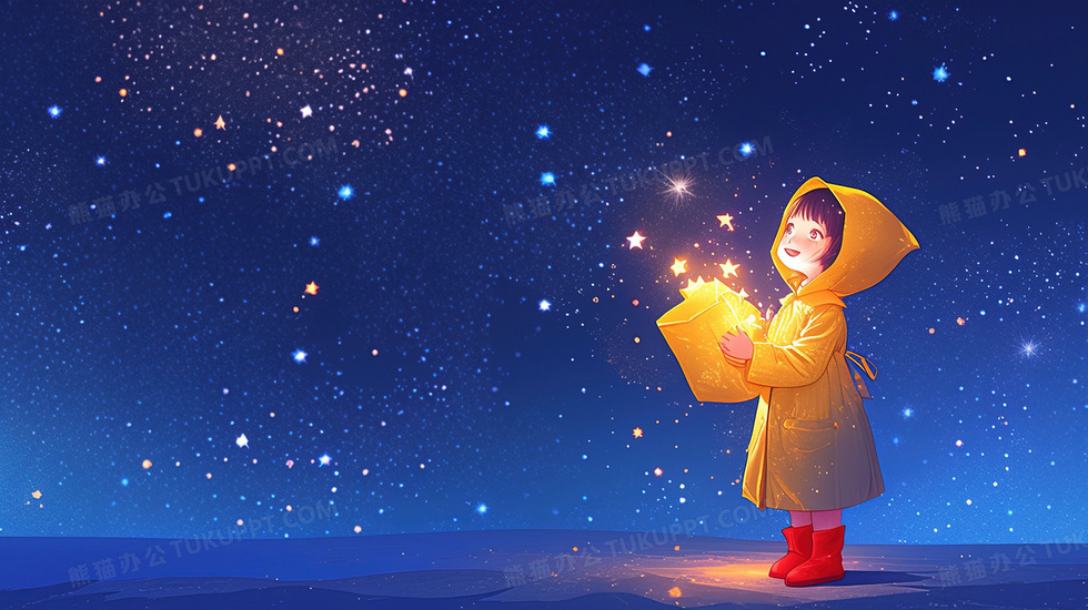 本作品内容为收集星星的小孩子背景, 格式为 jpg, 大小4 MB, 图片尺寸为2912 x 1632, 作品中背景图片无需修改, 源文件无水印,可以直接使用, 欢迎使用熊猫办公。 如认为平台内容涉嫌侵权,可通过邮件:tousu@tukuppt.com提出书面通知,我们将及时处理。
