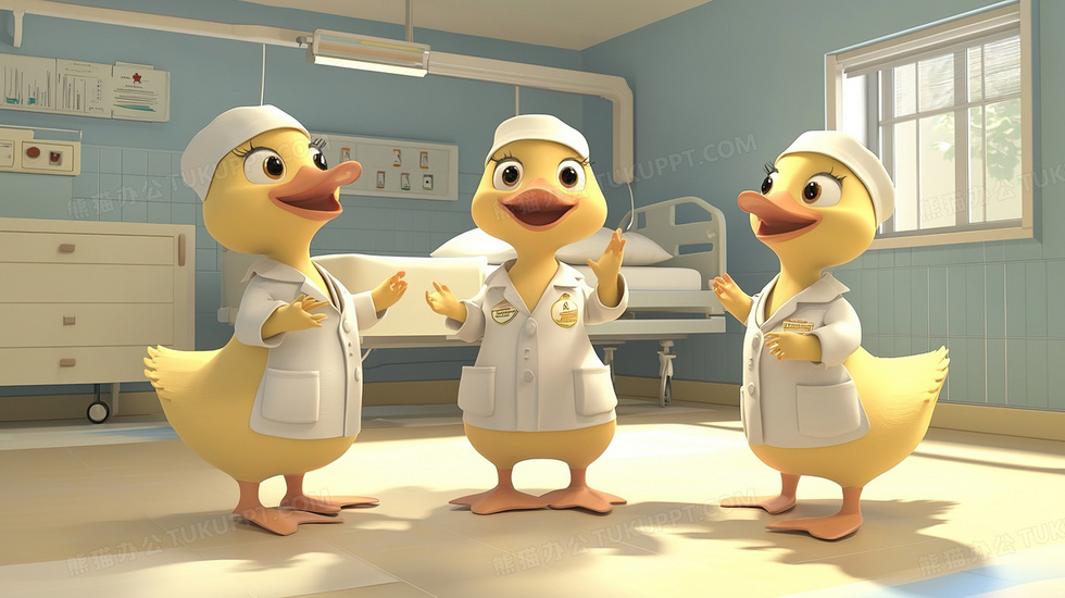 本作品内容为医院内的可爱卡通鸭子医生护士插画, 格式为 jpg, 大小2 MB, 图片尺寸为2912 x 1632, 源文件无水印, 欢迎使用熊猫办公。 如认为平台内容涉嫌侵权,可通过邮件:tousu@tukuppt.com提出书面通知,我们将及时处理。