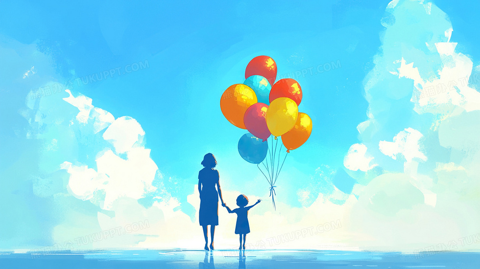 本作品内容为气球母亲和孩子亲情背景, 格式为 jpg, 大小3 MB, 图片尺寸为2912 x 1632, 作品中背景图片无需修改, 源文件无水印,可以直接使用, 欢迎使用熊猫办公。 如认为平台内容涉嫌侵权,可通过邮件:tousu@tukuppt.com提出书面通知,我们将及时处理。