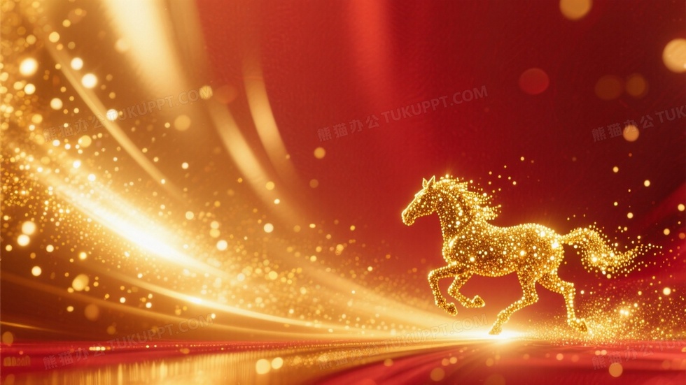 本作品内容为画面右下角是金色粒子组成奔跑的马, 格式为 jpg, 大小1 MB, 图片尺寸为1664 x 936, 作品中背景图片无需修改, 源文件无水印,可以直接使用, 欢迎使用熊猫办公。 如认为平台内容涉嫌侵权,可通过邮件:tousu@tukuppt.com提出书面通知,我们将及时处理。
