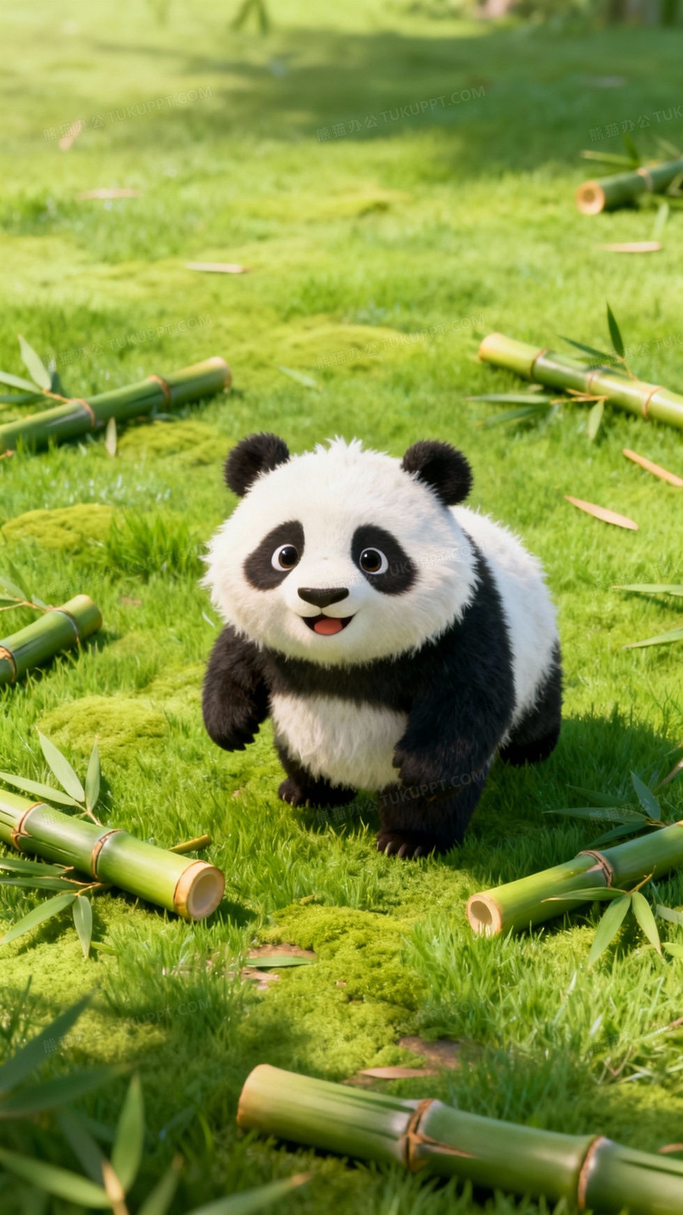 本作品内容为一只憨态可掬的3D熊猫站在绿色草地上, 格式为 jpg, 大小1 MB, 图片尺寸为1440 x 2560, 源文件无水印, 欢迎使用熊猫办公。 如认为平台内容涉嫌侵权,可通过邮件:tousu@tukuppt.com提出书面通知,我们将及时处理。
