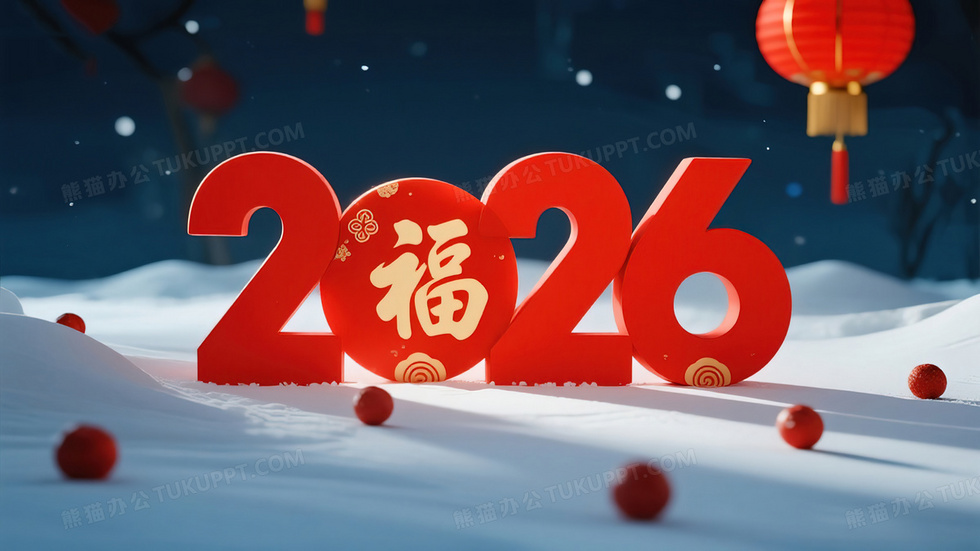 本作品内容为马年春节3D红色喜庆数字2026插画, 格式为 jpg, 大小5 MB, 图片尺寸为3328 x 1872, 源文件无水印, 欢迎使用熊猫办公。 如认为平台内容涉嫌侵权,可通过邮件:tousu@tukuppt.com提出书面通知,我们将及时处理。