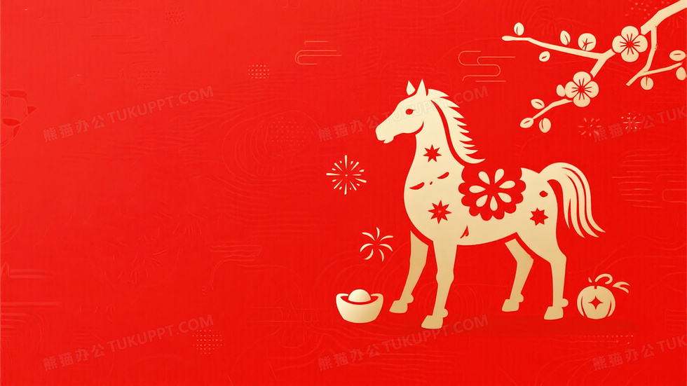 本作品内容为马年红色剪纸生肖马简约喜庆春节背景, 格式为 jpg, 大小6 MB, 图片尺寸为3328 x 1872, 作品中背景图片无需修改, 源文件无水印,可以直接使用, 欢迎使用熊猫办公。 如认为平台内容涉嫌侵权,可通过邮件:tousu@tukuppt.com提出书面通知,我们将及时处理。