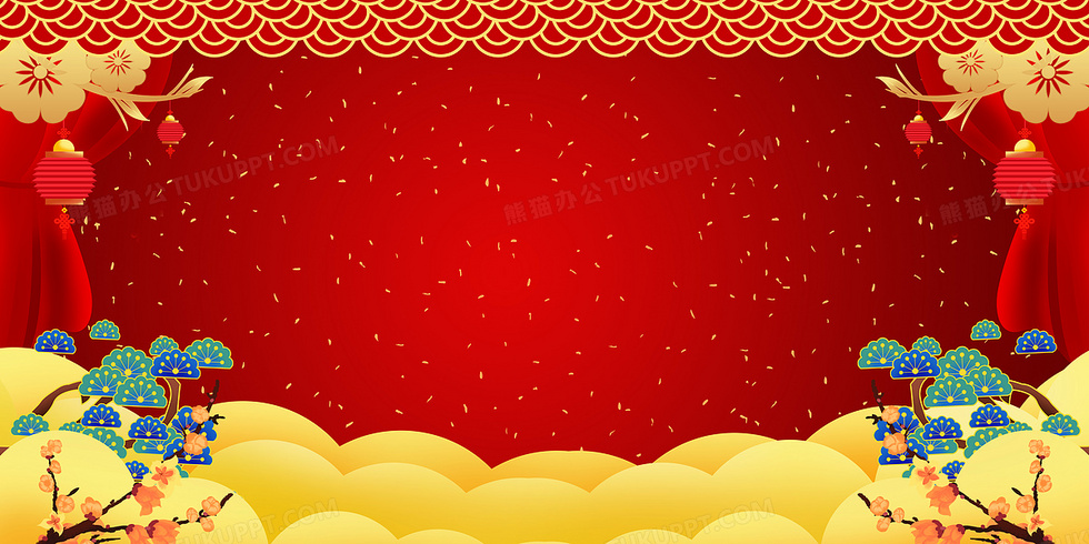 本作品内容为红色喜庆新年背景, 格式为 psd, 大小123 MB, 图片尺寸为9449 x 4724, 作品中背景图片无需修改, 源文件无水印,可以直接使用, 欢迎使用熊猫办公。 如认为平台内容涉嫌侵权,可通过邮件:tousu@tukuppt.com提出书面通知,我们将及时处理。