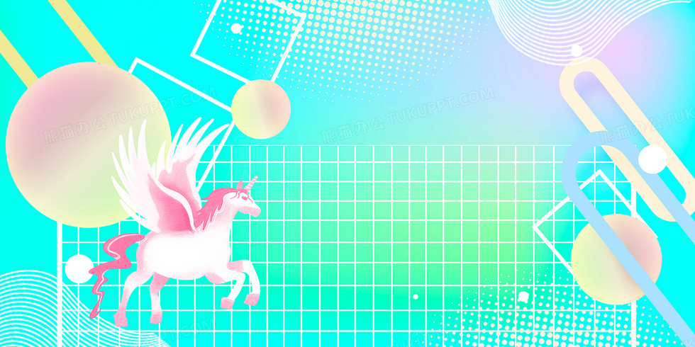 本作品内容为绿色蒸汽波独角兽几何背景, 格式为 psd, 大小17 MB, 图片尺寸为4724 x 2362, 作品中背景图片无需修改, 源文件无水印,可以直接使用, 欢迎使用熊猫办公。 如认为平台内容涉嫌侵权,可通过邮件:tousu@tukuppt.com提出书面通知,我们将及时处理。