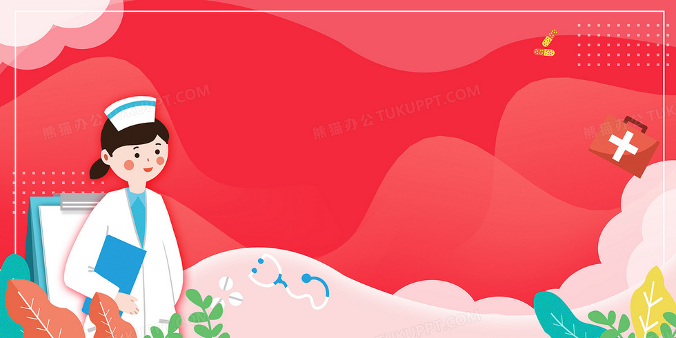 本作品内容为红色医疗护士简约医院医疗元素背景, 格式为 psd, 大小9 MB, 图片尺寸为4724 x 2362, 作品中背景图片无需修改, 源文件无水印,可以直接使用, 欢迎使用熊猫办公。 如认为平台内容涉嫌侵权,可通过邮件:tousu@tukuppt.com提出书面通知,我们将及时处理。