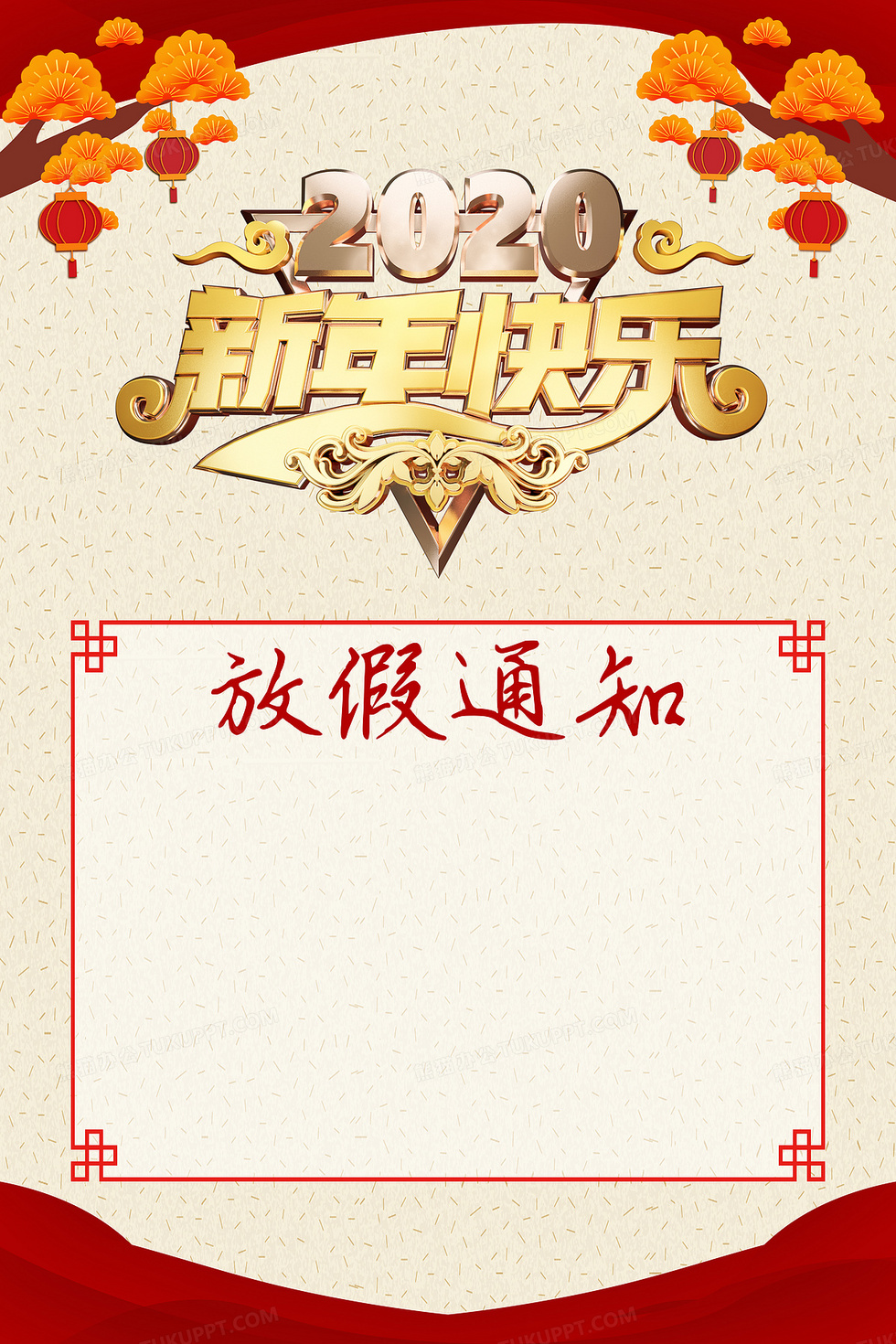 本作品内容为喜庆新年放假通知背景, 格式为 psd, 大小170 MB, 图片尺寸为7087 x 10630, 作品中背景图片无需修改, 源文件无水印,可以直接使用, 欢迎使用熊猫办公。 如认为平台内容涉嫌侵权,可通过邮件:tousu@tukuppt.com提出书面通知,我们将及时处理。