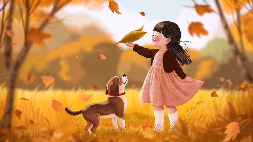 本作品内容为金色秋天可爱的小女孩和小狗一起在公园玩耍创意插画, 格式为 jpg, 大小6 MB, 图片尺寸为2912 x 1632, 源文件无水印, 欢迎使用熊猫办公。 如认为平台内容涉嫌侵权,可通过邮件:tousu@tukuppt.com提出书面通知,我们将及时处理。