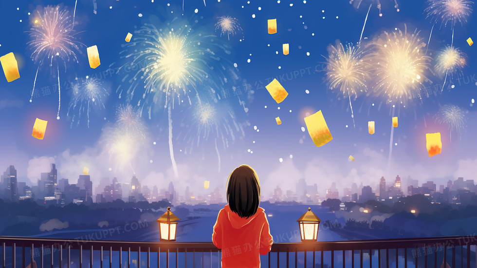 本作品内容为唯美春节节日烟花插画, 格式为 jpg, 大小4 MB, 图片尺寸为2912 x 1632, 源文件无水印, 欢迎使用熊猫办公。 如认为平台内容涉嫌侵权,可通过邮件:tousu@tukuppt.com提出书面通知,我们将及时处理。
