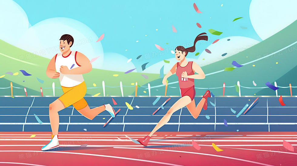 本作品内容为运动员们在跑道上激烈的比拼插画, 格式为 jpg, 大小5 MB, 图片尺寸为2912 x 1632, 源文件无水印, 欢迎使用熊猫办公。 如认为平台内容涉嫌侵权,可通过邮件:tousu@tukuppt.com提出书面通知,我们将及时处理。