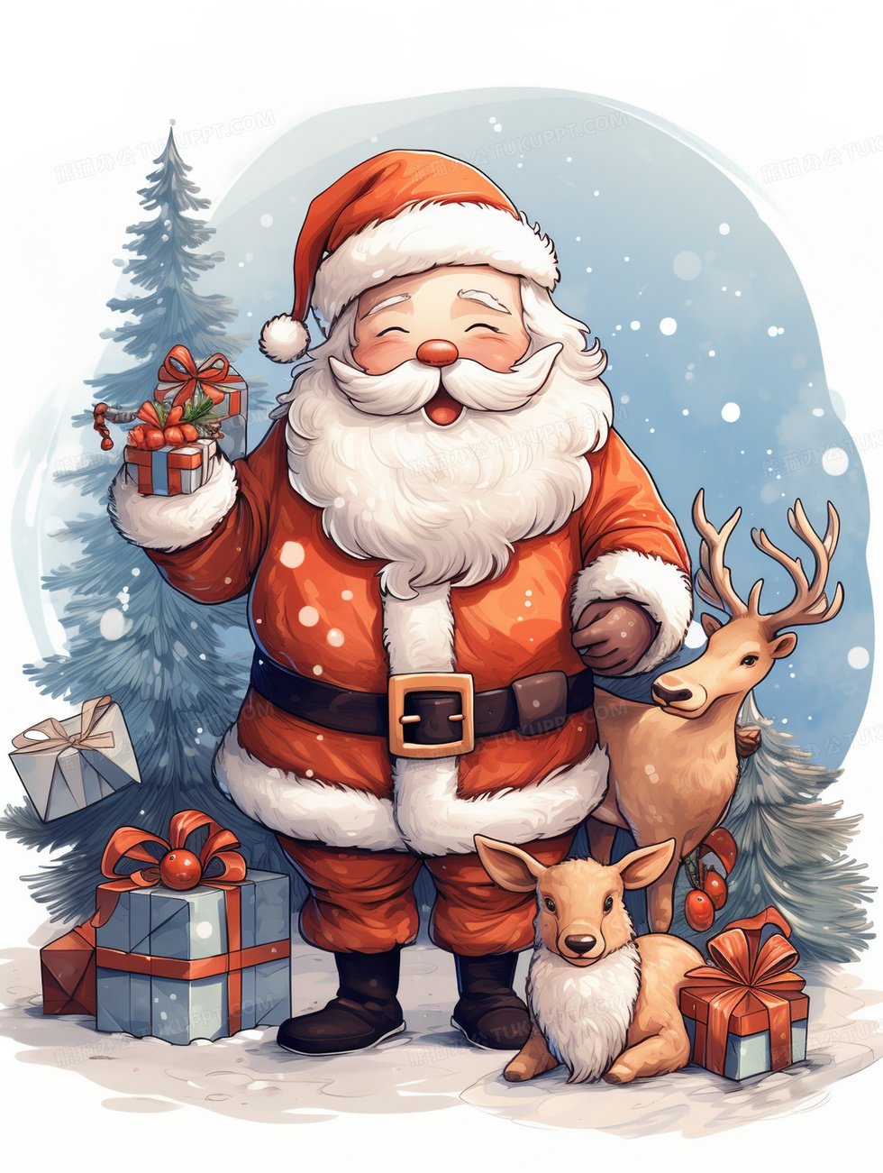 本作品内容为圣诞老人圣诞节卡通插画, 格式为 jpg, 大小6 MB, 图片尺寸为1856 x 2464, 源文件无水印, 欢迎使用熊猫办公。 如认为平台内容涉嫌侵权,可通过邮件:tousu@tukuppt.com提出书面通知,我们将及时处理。