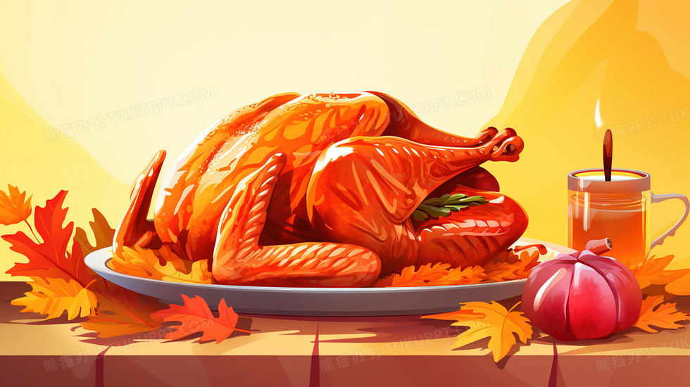 本作品内容为感恩节美味烤火鸡插画, 格式为 jpg, 大小5 MB, 图片尺寸为2912 x 1632, 源文件无水印, 欢迎使用熊猫办公。 如认为平台内容涉嫌侵权,可通过邮件:tousu@tukuppt.com提出书面通知,我们将及时处理。